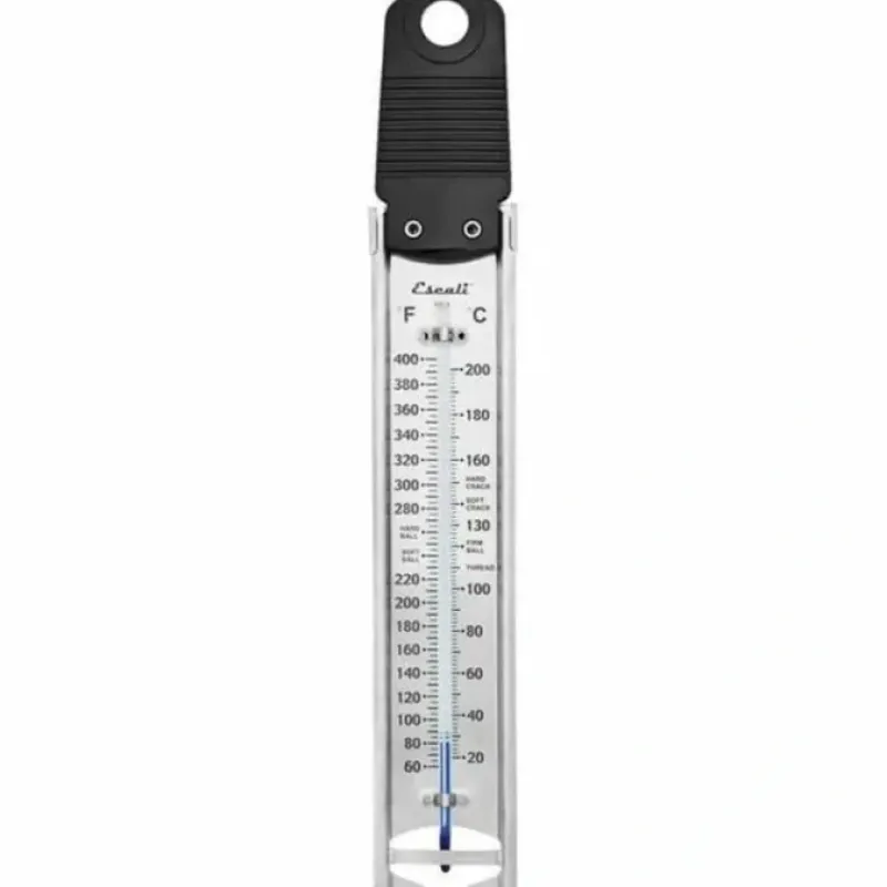 Deep fry foods and make candy with ease! The Escali Deep Fry/Candy Paddle Style Thermometer is the ideal tool to help you make your candy or deep fried foods with ease and accuracy! The paddle style design has a hands free vessel clip and a temperature range of 60F to 400F (20C to 200C).