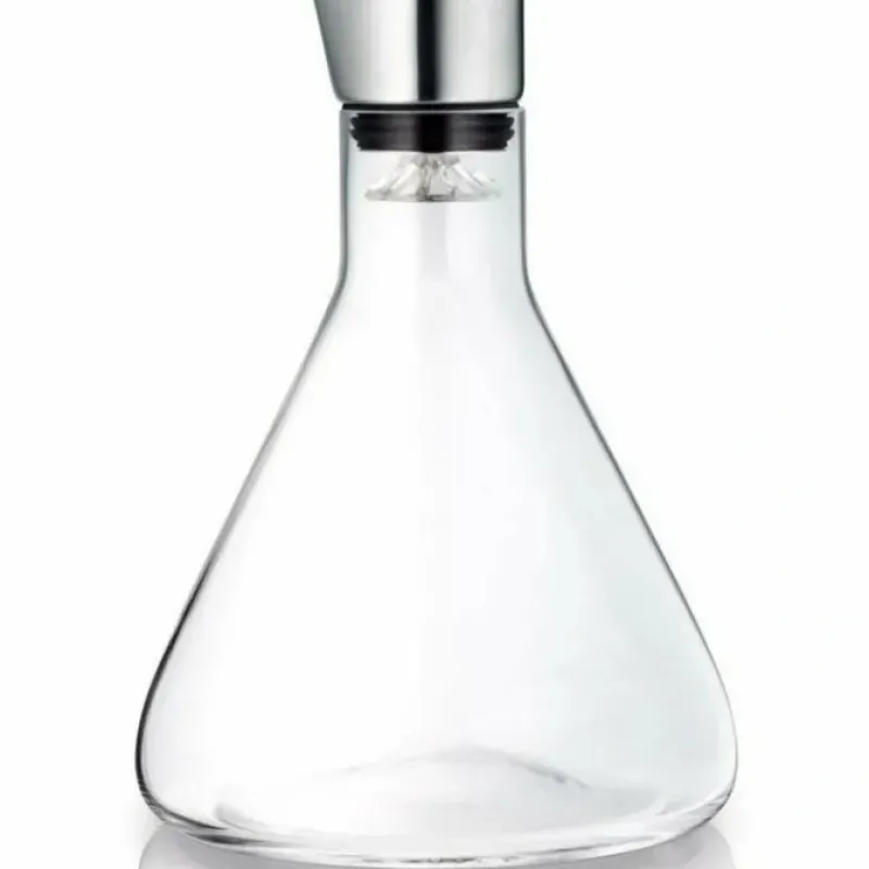 The DELTA Wine Decanter with Aeratoroffers a smart solution: the wine is being filtered and aerated while being poured into the carafe through the lid. It’sminimalist figure is of timeless beauty yet eminently practical at the same time. The unique shape of the closure means that when the wine is decanted. it runs down across the inner entire glass surface. thereby maximizing aeration. The decanter top remains in place during serving. It retains wine stone and cork residues while the spout ensures drip-free pouring. 7 1/8” x 7 1/8” x 10 1/8”.