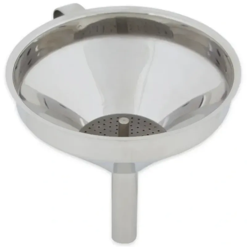 - Deluxe stainless steel funnel with removable straining filter for easy cleaning.