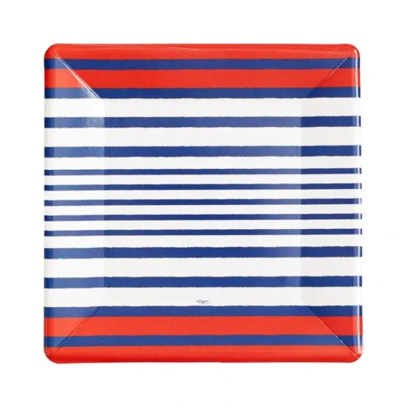Our plates are printed in the USA and constructed from durable. high-quality paperboard that holds up even when plates are full. Plate prints and colors are always applied with safe. water-based dyes. During your next dining occasion. layer up Caspari paper plates and mix and match prints and sizes for a one of a kind tabletop style.
