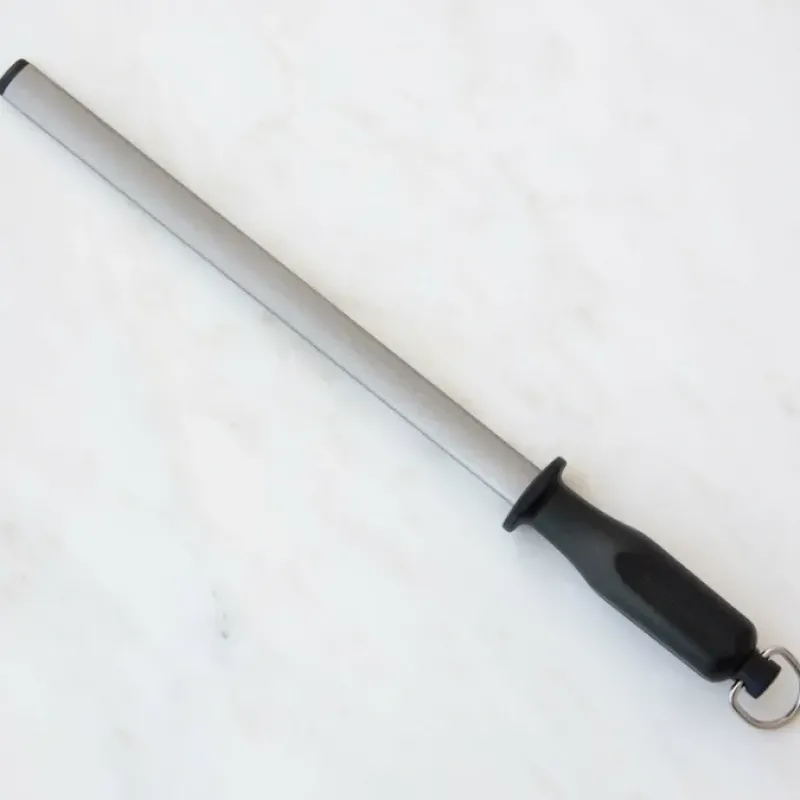 The Messermeister Four-Sided Diamond Sharpening Rod has variable grit surfaces ideal for multi-stage sharpening of knives. scissors and other cutting tools. The 12″ rod has wide flat sharpening surfaces ranging from coarse 200 grit to fine 1000 grit for versatile edge maintenance. and an ergonomic handle with a hang ring. Hand wash with soap and water.