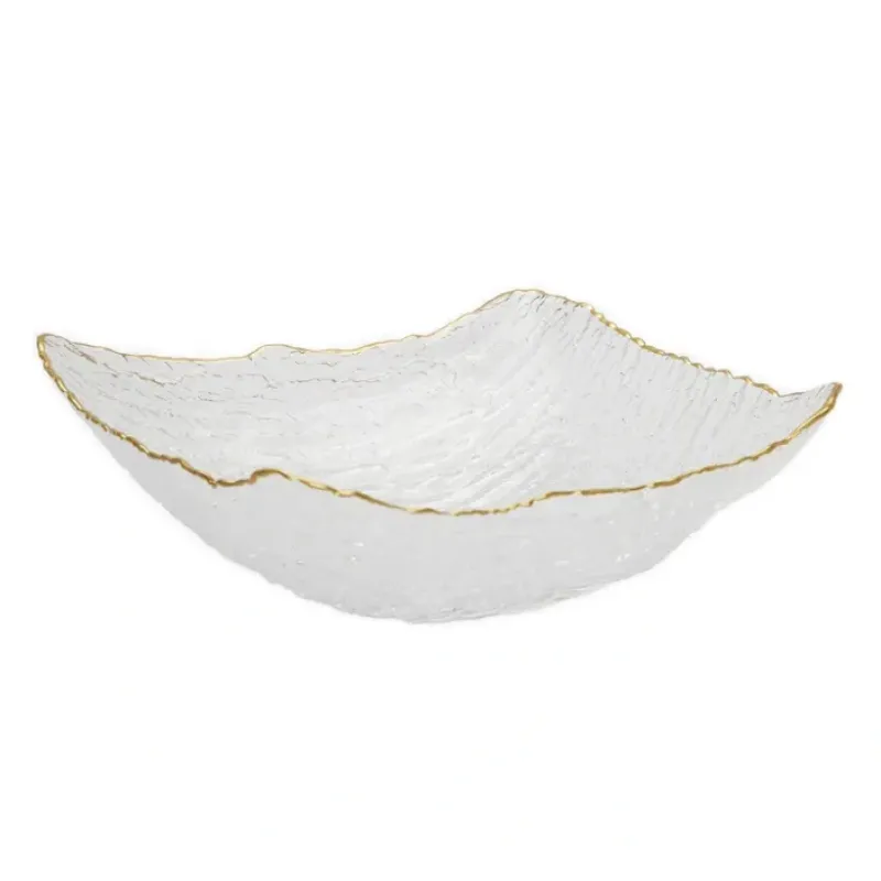 GJ187753CB2526 Crushed Glass Square Salad Bowl with Gold Rim – 9.75″L x 9.75″W x 3.5″H