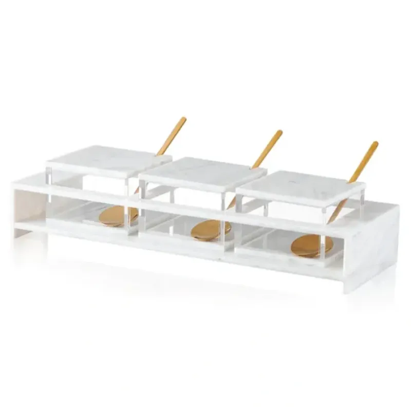 DescriptionKY115366DB-WHT Square Dip Bowl Set- White Marble Lucite