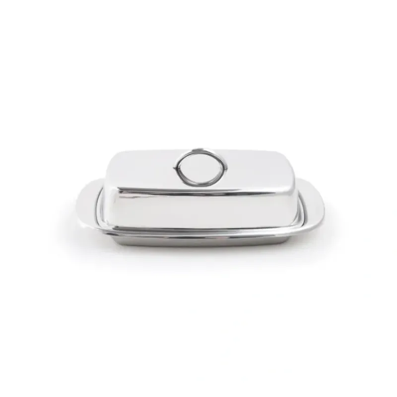 Butter makes everything better. It turns your toast into a treat! Your butter will be perfectly spreadable at all times when using this stainless steel Butter Dish with cover. It has a classic design and will keep your butter at room temperature. allowing you to leave it out on the kitchen table for easy access. and look good as well. This attractive metal butter dish will compliment both classic and modern kitchen decor. while holding a large amount of butter. 2 sticks. a brick of butter or a block of cream cheese. The sturdy handle on the butter dish lid is easy to grip. making the lid easily removable. Keep butter on the counter allowing it to always be the perfect spreadable temperature for your favorite toast or bagel. Don’t use hard. brittle butter from the fridge…keep your butter soft and easy-to-spread by storing it in this two stick butter dish!