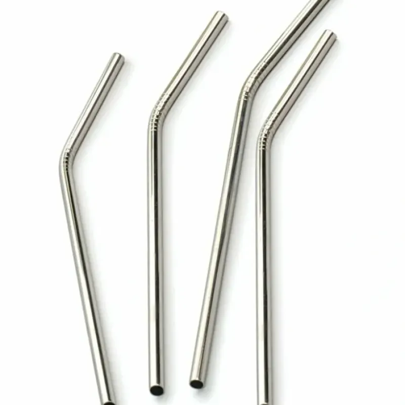 Our set of four bent drink straws are made of polished 18/8 stainless steel and are ideal for cold summer beverages. milk shakes and dinner party cocktails.