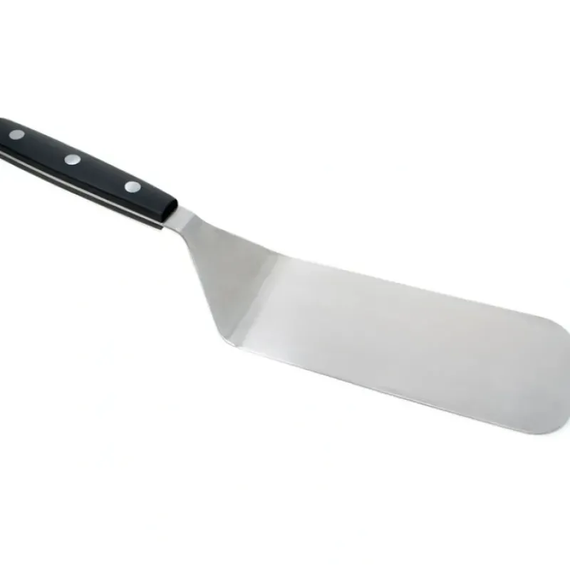 Quality 9″/23cm stainless steel head with a wide. offset angled surface to easily turn and serve anything on the stovetop or grill. The 5″/13cm heat resistant. full-tang handle has 3 stainless steel rivets for a smooth. comfortable surface.