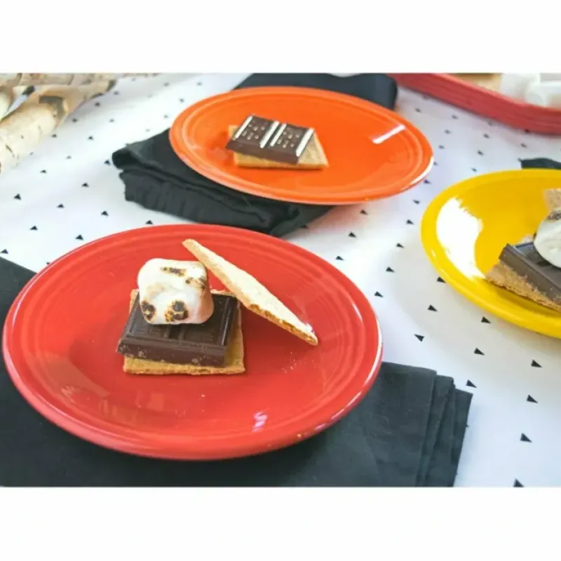 The Fiesta Salad Plate brings bold color and classic style to your dinner table. Beautifully crafted of durable ceramic. this vibrant piece boasts timeless concentric ring patterns that transform every meal into a celebration.