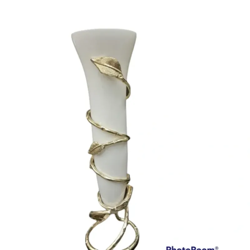 DescriptionQV491511CCF949WH Gold Leaf Vase with White Insert