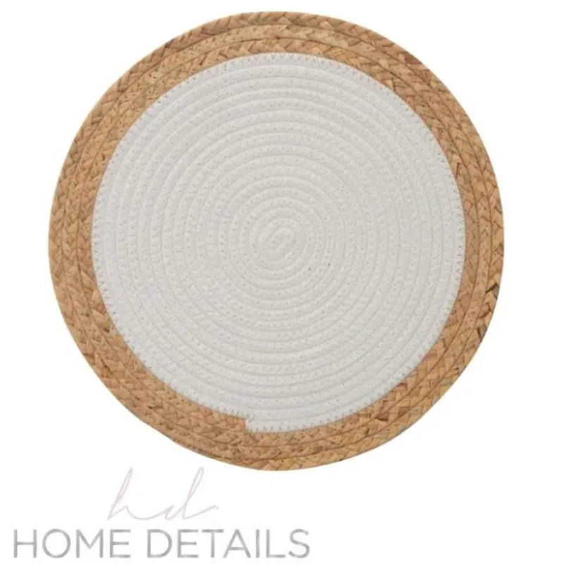 Flash Sale Round Polyester Placemat with Water Hyacinth Edge – D15″ – cozylivehome.com | we sell a wide range of comfortable household items Shop All