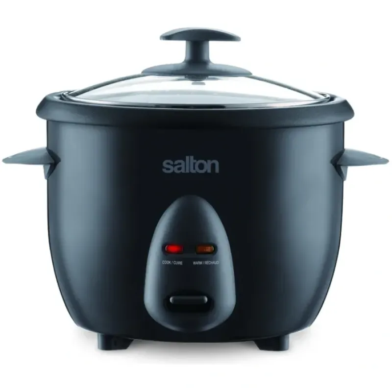Salton’s 10 Cup Rice Cooker can cook up to 10 cups of perfect rice and keep it warm until you are ready to serve. The non-stick bowl removes for easy cleaning! Comes with a convenient ‘stir and serve’ spatula and a glass lid to monitor the cooking process. The included steaming basket lets you prepare vegetables. fish. and more while your rice cooks. Make the perfect amount of fluffy rice every time!