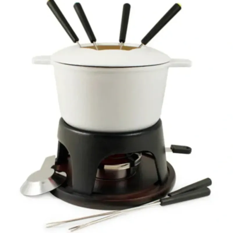 Swissmar Cast Iron Fondues offer the utmost in versatility. In addition to their décor savvy color pallet. they are ideal for meat. cheese AND chocolate fondue. Cast iron pots provide even heat distribution. making them ideal for cooking at both high and low temperatures – without hot spots.