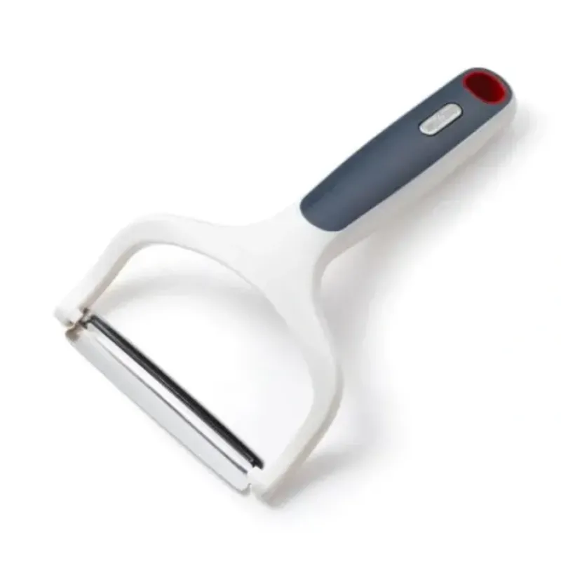 The extra wide Y blade peeler from Zyliss makes light work of peeling tough skinned. large vegetables. The hardened stainless steel blade swivels to follow the contours of the vegetables ensuring that peeling is effortless with no need for excessive pressure. The ergonomically designed handle not only makes it comfortable to use but keeps hands away from the blade and produce for safety in use. Peelers are an essential tool for any kitchen and this super wide peeler offers superior performance on those hard to peel vegetables that are too large or too tough for your standard peeler. You can even get creative. using the peeler to shred lettuce or cabbage for delicious salads and coleslaw. or slice extra wide ribbons.