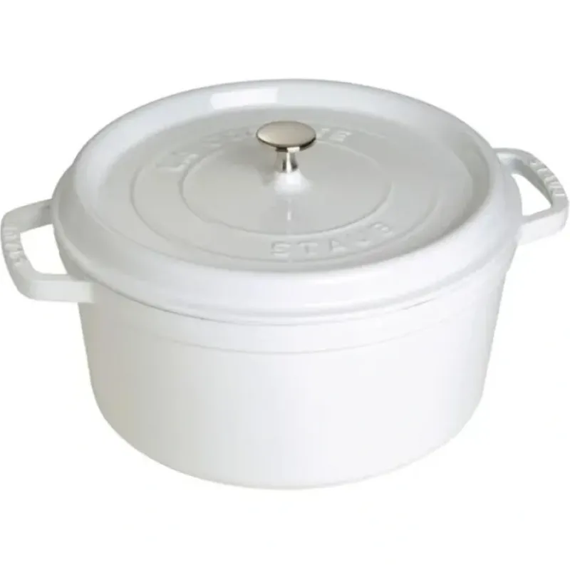 This roomy. round Dutch oven is perfect for dinner parties. Its ample interior means you won’t crowd food as it cooks. And like all STAUB cocottes. it’s unsurpassed for slow-cooking meat and vegetables to tender perfection. and for simmering hearty stews and soups.