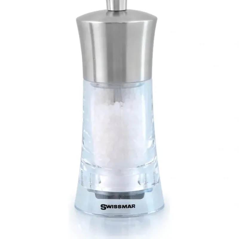 - Beautifully designed brushed stainless steel and wood Mills add elegance and style to any tabletop.