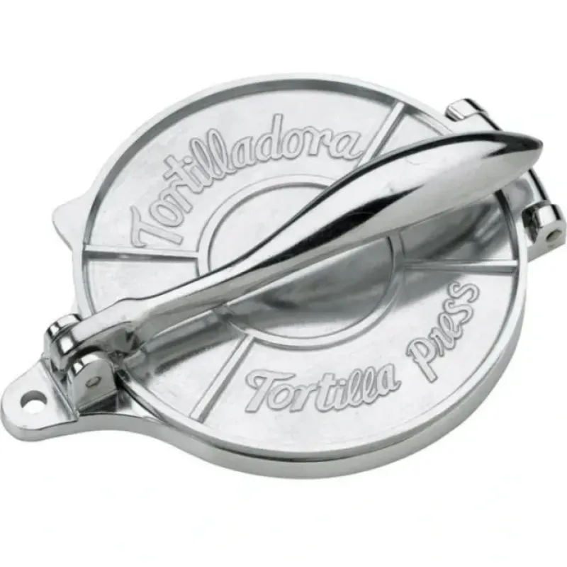 Love preparing your own authentic Mexican dishes? Complete with a tortilla dough recipe. this Tortilla Press enables you to easily make your own delicious tortillas right at home. Fabricated from sturdy cast aluminum. this press has a striking polished finish and is oven safe up to 350 degrees. Simply place balls of corn dough. or masa. into the center of the press and apply pressure using the lever. Now you have flat tortillas that are ready to bake. Also can be used to make arepas. tostones. empanadas or any other flat bread or treat! Small. light. and portable. this tortilla press will be a smash hit at your next fiesta. dinner party. pot luck. or family meal. Forget store-bought tortillas. and complete your favorite meals with the unbeatable taste of fresh. homemade corn tortillas.