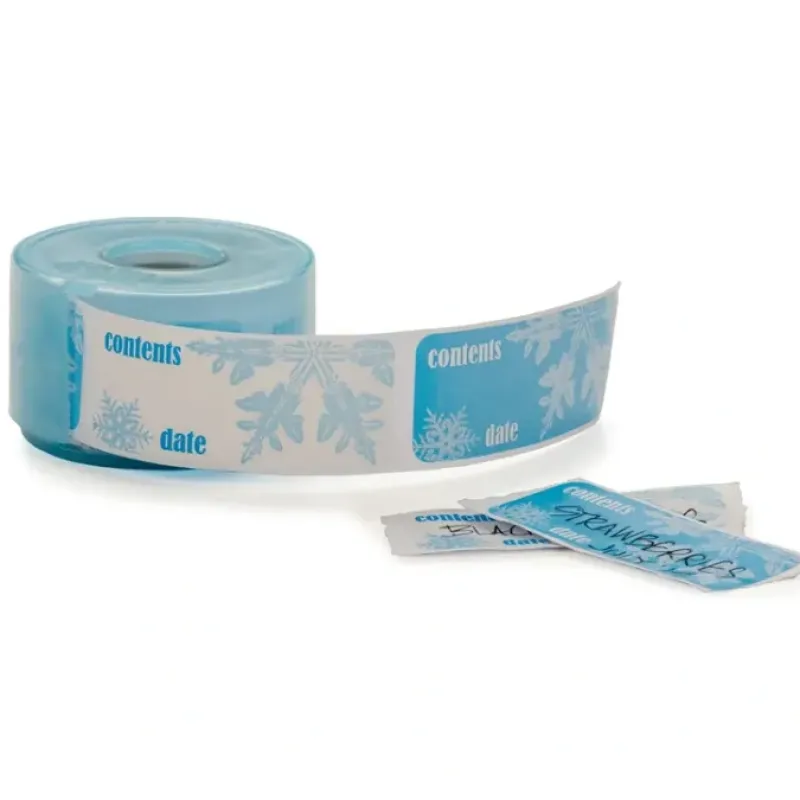 - Blue and white snowflake designs help identify stickers intended for fridge use.