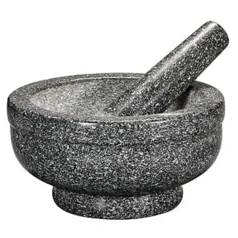 This mortar is cut from one solid piece of natural. uncoated granite for longevity.