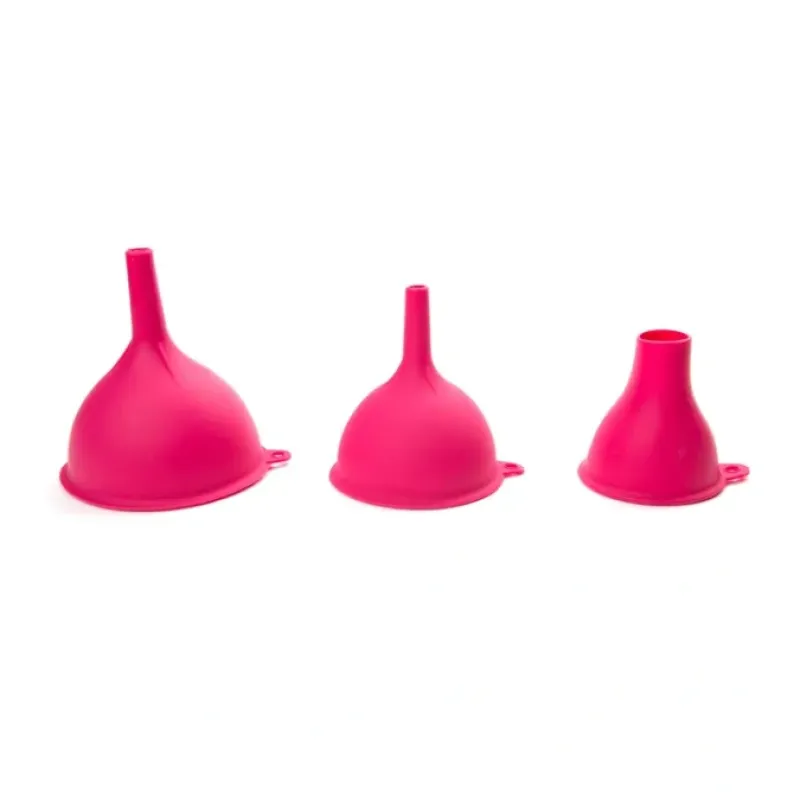 Take the mess out of pouring ingredients into bottles and containers. Farm Table’s Set of 3 Silicone Funnels boast a delightful pink color. perfect for transferring those berry preserves. Made of flexible. yet sturdy silicone. the funnels will stay in place when in use and are heat-resistant up to 445°F. Included are 2.5″. 3.5″ and 4.5″ funnels. with stems measuring 1″. 1/2″. and 3/8″ wide. all great sizes for transferring liquids and powders into storage jars or stylish serving bottles. The range of sizes allow you to easily pour into both small and larger jars and bottles. Ideal for cooking and baking ingredients. home canning. transferring salad dressings. garnishing plates and meals. dispensing melted chocolate over desserts. and even refilling essential oils. perfumes. and more. Get a more controlled. consistent and clean flow of liquids and ingredients.