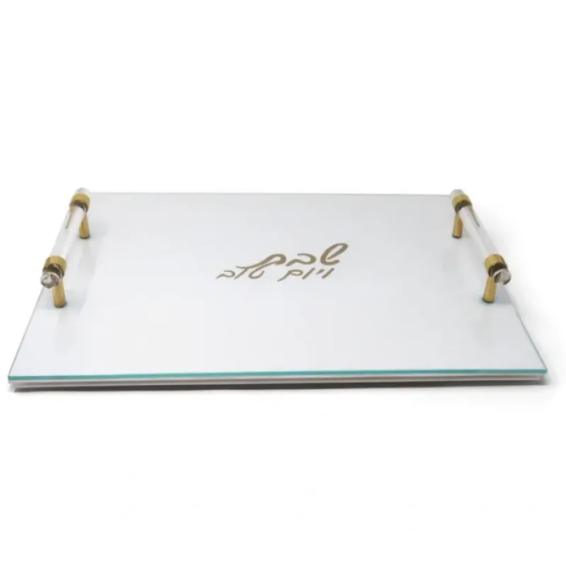 Enhance your table with this exquisite white leather challah board. Made with thick glass and adorned with embossed handles and prints. it’s perfect for Shabbos or Yom Tov use. Enjoy the beauty and convenience this board brings to your table. This tray can make a great gift for family and friends.Measures: 16″L x 12″W