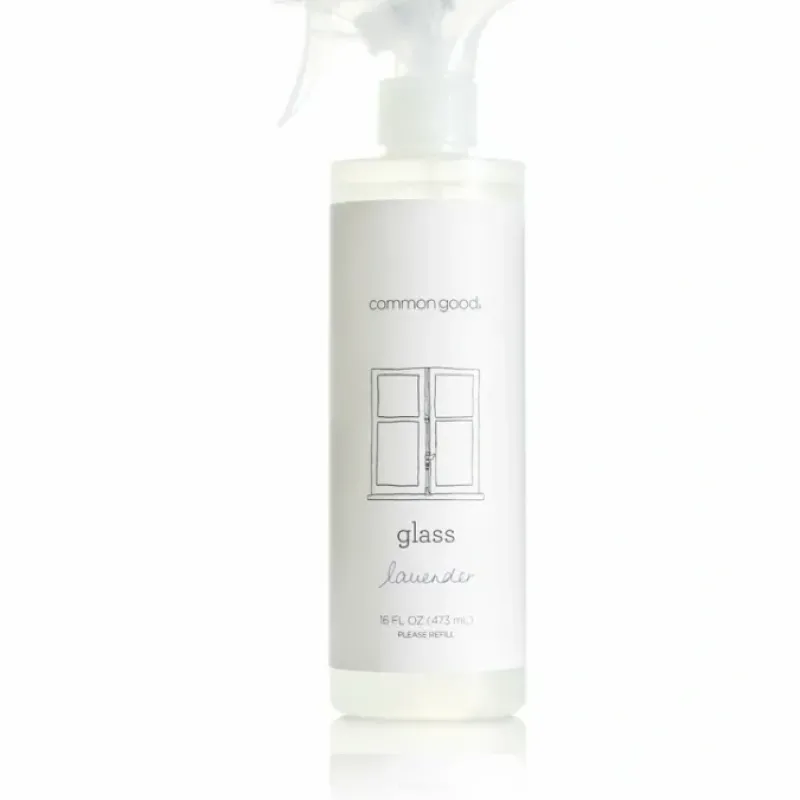 Common Good simplebut powerful formulation gently removes all traces of streaks around your home. Cleans windows and glass without harsh chemicals. dyes. and perfumes Gentle ingredients specially formulated to use in your home No ammonia. chlorine. or other suspect ingredients Powered by plants to create a sparkling. streak-free shine Vegan and not tested on animals 100% pure essential oil scents Ingredients Water. decyl glucoside. lactic acid. potassium hydroxide. citric acid. essential oil.