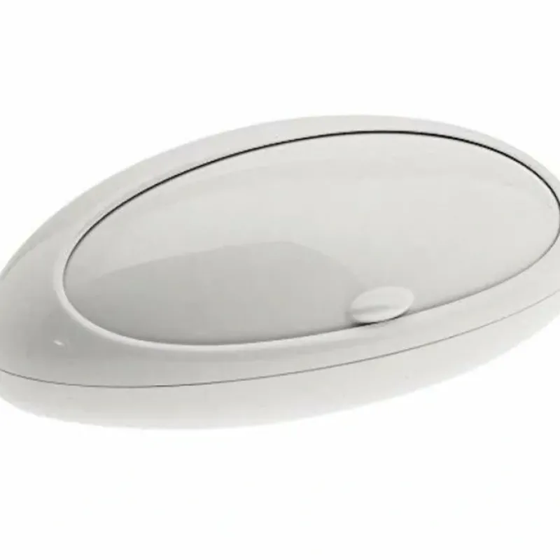The Gnam Bread Box. with its futuristic shape. brings to mind the cartoon-inspired creations that feature so strongly in Stefano Giovannoni’s design language. here softened to a very clear form highlighted by the extraordinary brilliance of the material used. in both its transparent and opaque versions.