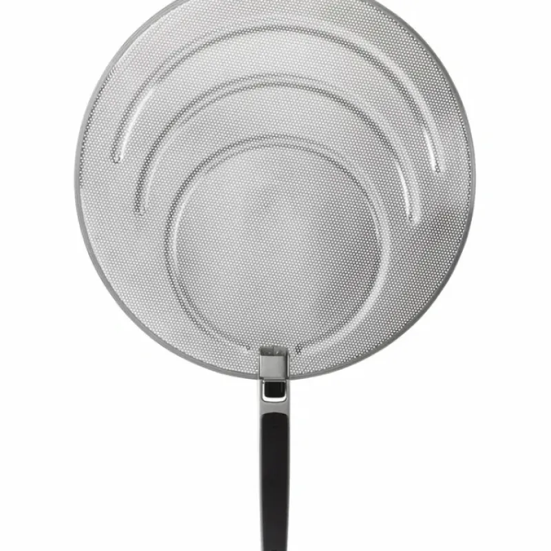 Keep it clean. Just top your 13″ under pans with this splatter screen when sautéing or frying eliminate messy splashes that nearly double cleanup time. This dishwasher-safe stainless steel essential features grooved rings that secure it into place a comfort handle that folds for compact storage.