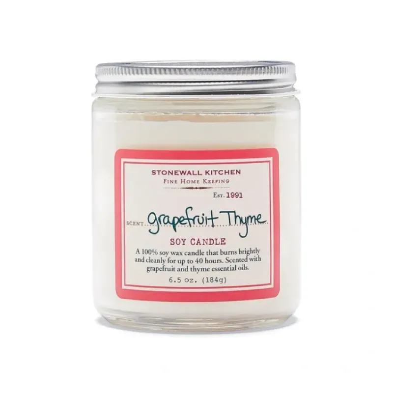 Light and fresh. this fragrance fills any room with a unique and wonderful scent! Crafted using renewable resources to emit no soot. our clean-burning soy candle will perfume the air with the fresh essences of grapefruit and thyme.