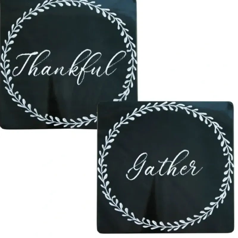 The perfect gift for grateful people! This design features “Gather” and “Thankful” sentiments on a black background.