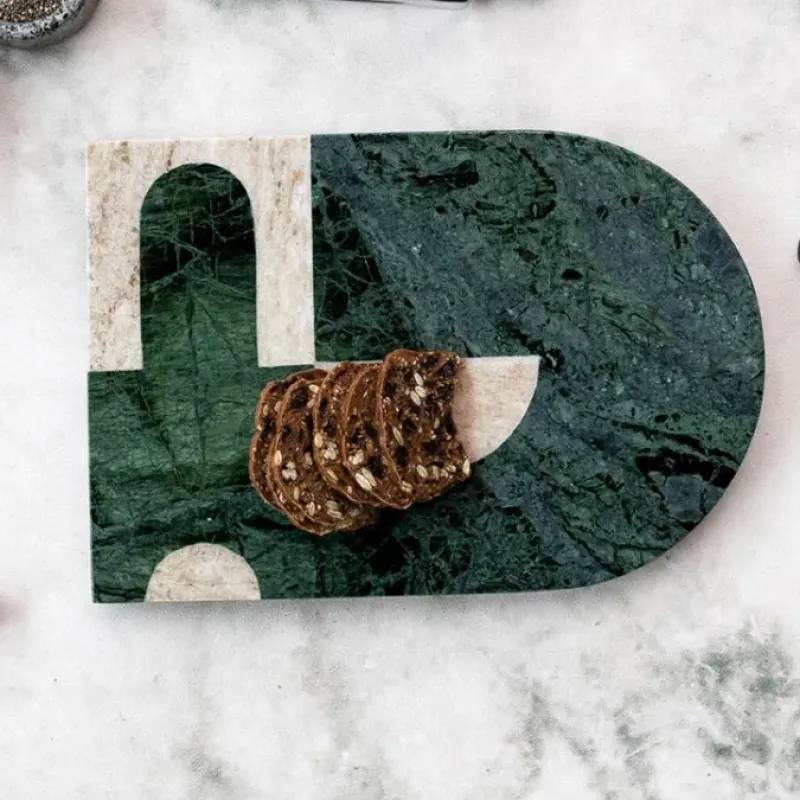 - Wide marble board with abstract shape design in green