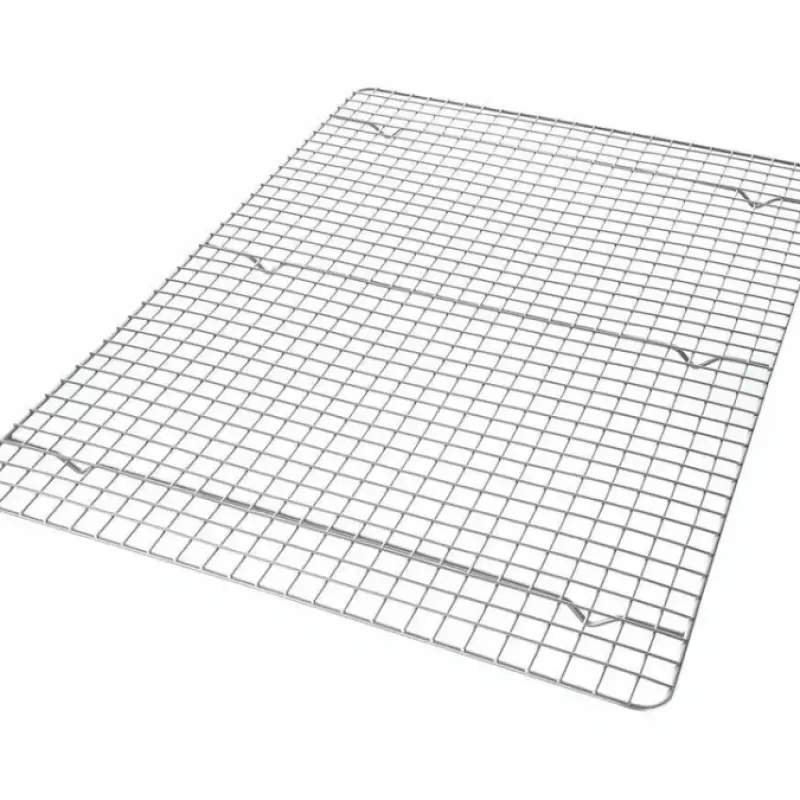Cookies cool crisp and intact thanks to the nonstick coating on this cooling rack that’s bakeable and fits inside USA Pan half sheet pans. This commercial-quality cooling rack features a steel cross wire design and raised feet. which elevates cookies. breads. cakes. and more into a raised position that serves to promote uniform cooling.