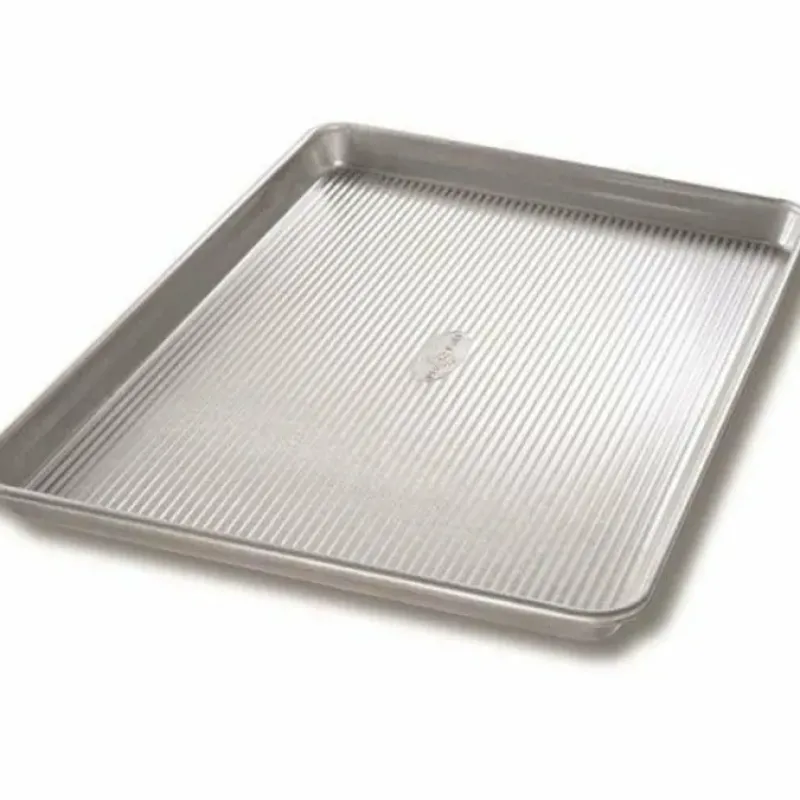 The USA PAN Half Sheet Pan provides home bakers with a classic baking experience for creating flawless homemade cookies. pizza. or french fries! The pan surface is coated with a patented AMERICOAT coating. a non-stick silicone. allowing you to easily release your baked goods from the pan. AMERICOAT is made without PTFE. PFOA and BPA. USA PAN’s professional grade bakeware helps everyday home bakers produce professional grade baked goods. USA PAN is a Bundy Family owned company. based in the Greater Pittsburgh. Pennsylvania area.