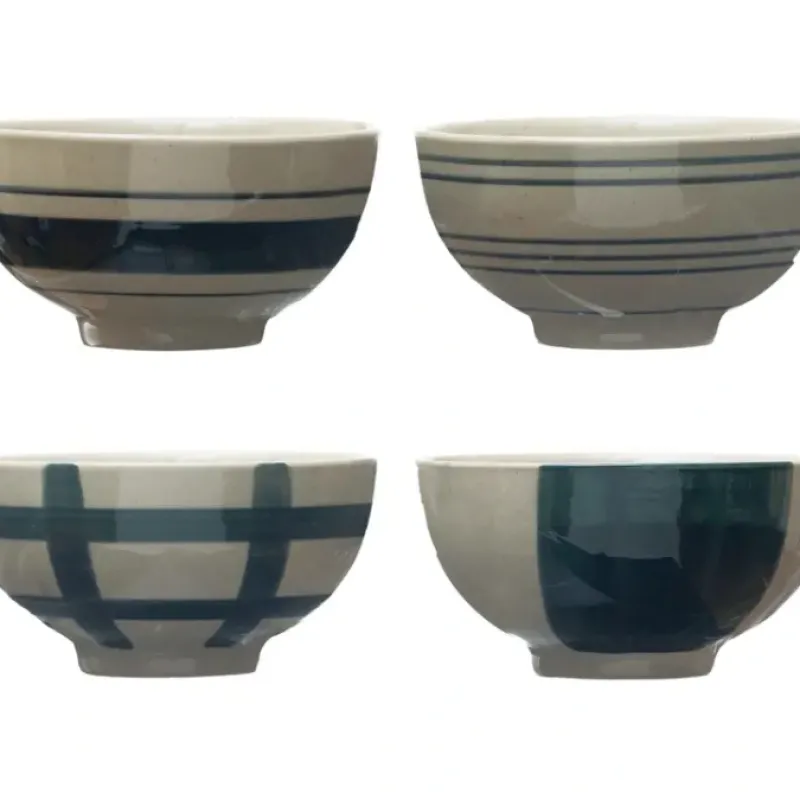 Hand-Painted Stoneware Bowl w/ Pattern. 4 Styles