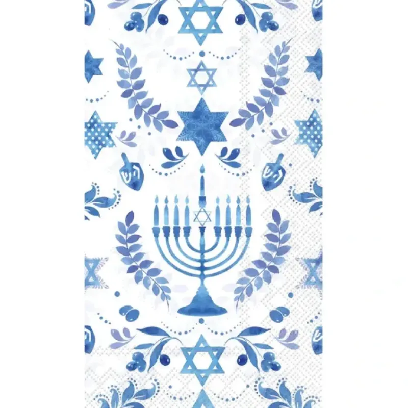 Hanukkah Celebration (This beautiful product embodies the spirit of Hanukkah with vibrant blue and white designs featuring traditional symbols such as the Star of David. menorahs. and dreidels. Perfect for adding a festive touch to your holiday gatherings!) – Hanukkah. celebration. Star of David. menorah. dreidel. festive. Jewish holiday. traditional. 3-ply napkins. elegant design