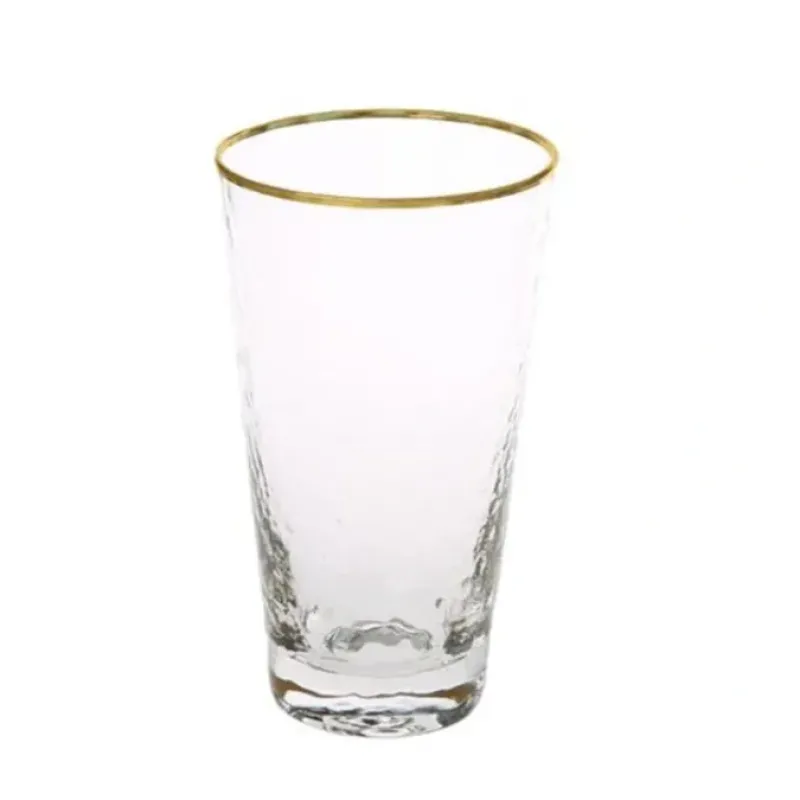 Completed with a fine hammered design. these gold rimmed tumblers are sold in a set of six. They are posh yet modest. creating just the right balance of grace. These tumblers are part of the gold rimmed set of the Glim Collection. Check out our other products with this fine design.-Dimensions- 3.5″D X 4.25″H