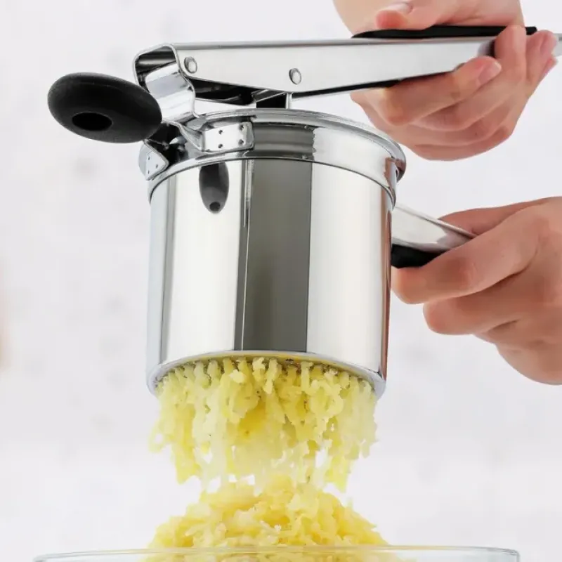 - LESS EFFORT. MORE MASH: We have designed this stainless steel potato ricer with a soft. non-slip silicone handle that lets you squeeze effortlessly without straining your wrist. Toss boiled potato chunks into the chamber and experience the velvety textured mash glide right out. ready to be paired with your meal.