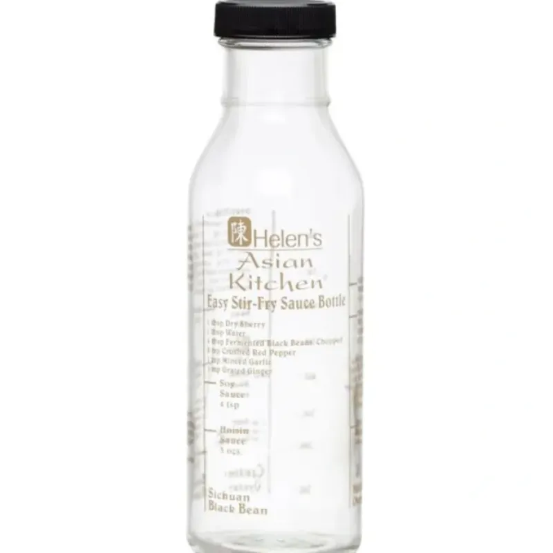 - Helen’s Asian Kitchen Stir Fry Sauce Bottle measures. mixes. serves and stores sauces quickly and easily