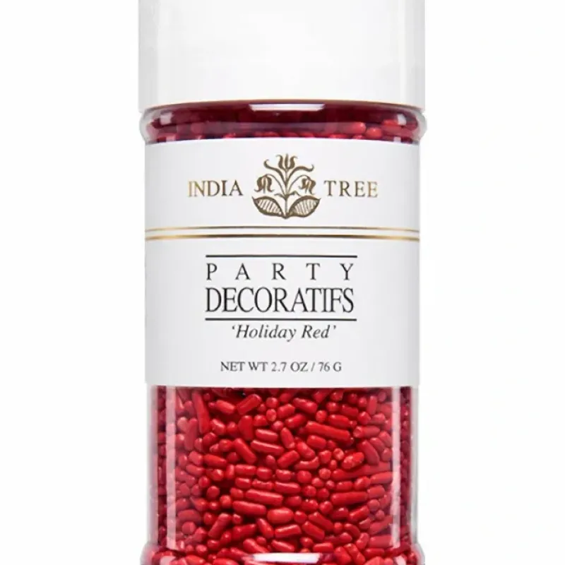 INDIA TREE Holiday Red sprinkles are bright red candy rods just right for Christmas baking. Decorate cookies. cakes and baked goods during the holidays or any time.