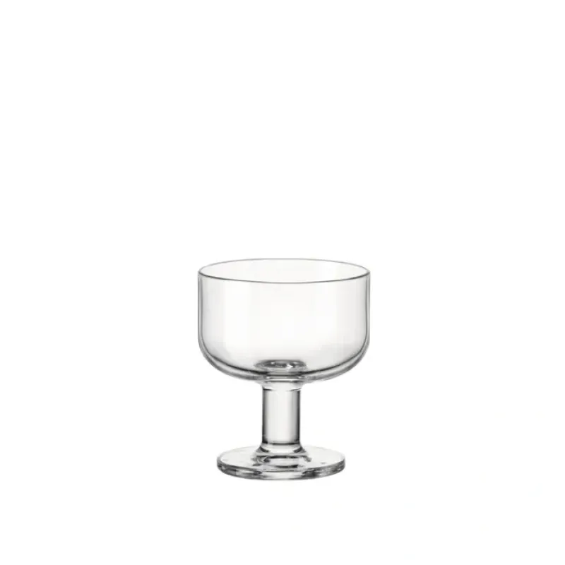 This dessert cup is part of the Hosteria collection. which shows clean and particularly functional shapes due to their sturdiness and stackability. The Hosteria dessert glass meets the needs of a commercial catering service that is attentive to the technical characteristics of the glasses. The dessert glass can be used for serving ice cream. spoon desserts and fruit salads. and the large mouthpiece allows you to embellish them with rich decorations.