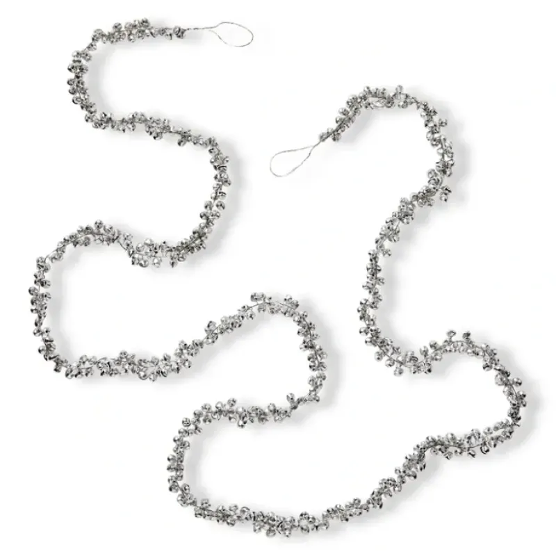 Add festive flair with this jingle bell garland. silver-toned iron bells are strung together on a twisted cord. creating a merry tinkling sound when moved. drape this lightweight yet substantial garland over your banister. fireplace. or around the christmas tree for a jolly decoration that announces the holiday season.