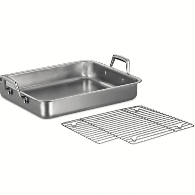 This Tramontina Prima 15″ Roasting Pan with Basting Grill is a handsome and practical addition to a set of cookware. It is constructed with durable 18/10 stainless steel. and it includes a removable stainless steel basting grill with an open square design for easy use. The kitchen roasting pan is also broiler and oven safe up to 500 degrees Fahrenheit. Riveted handles provide a secure. convenient means of handling and transport. Whether you’re cooking holiday dishes. roasted meats or a medley of vegetables. this Tramontina Prima 15″ Roasting Pan with Basting Grill is a dish you’ll reach for time and time again.