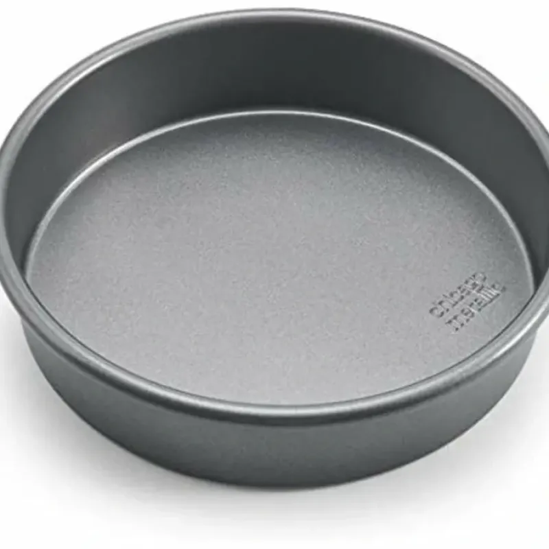 This Chicago Metallic Commercial Round Cake Pan is made of strong. durable. heavy-weight aluminized steel providing superior heat conduction and even baking. The diamond-quality. non-stick dual coating provides ease in baking and cleaning. Dishwasher. freezer and oven safe. Cake pan measures 8 in. Dia x 2 in. high.