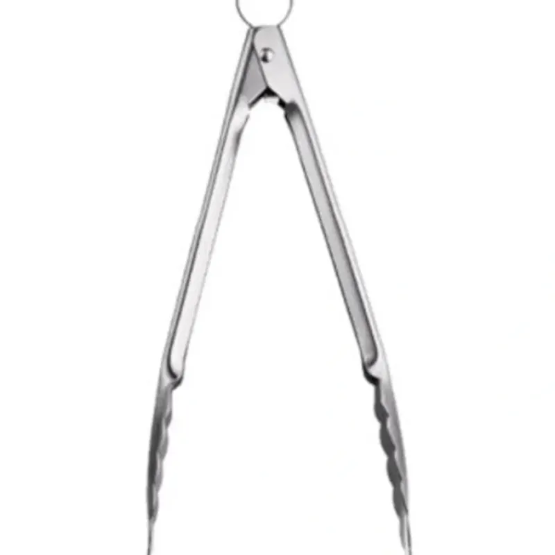 Stainless steel tongs designed to handle both cooking and serving tasks with ease.
