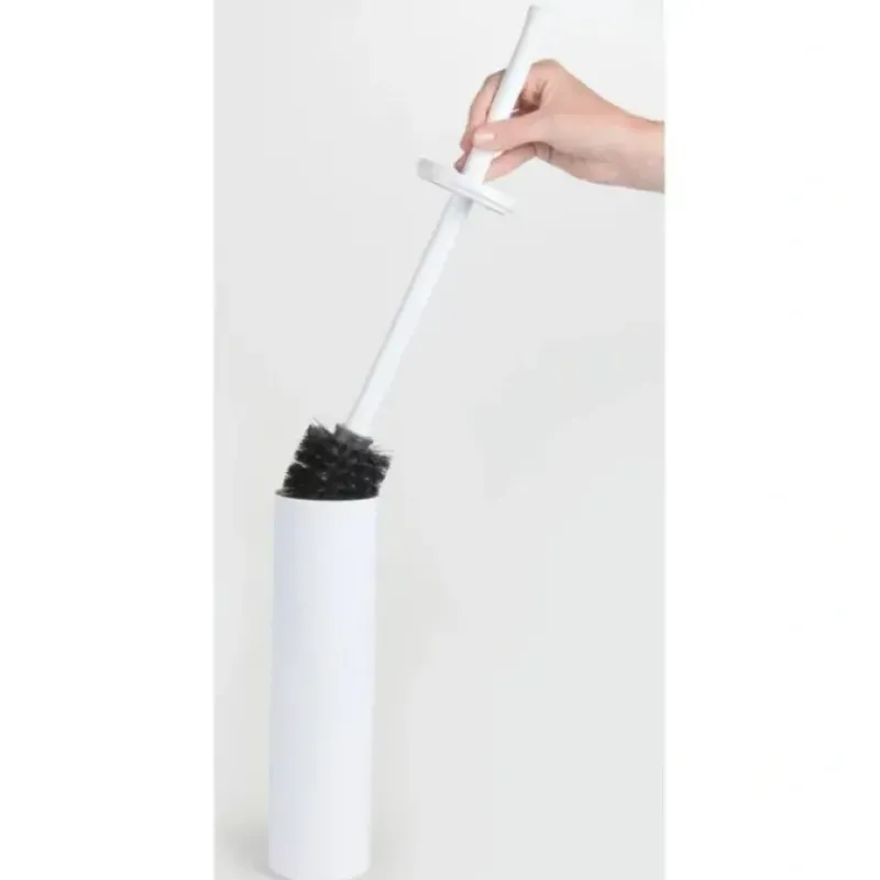 Keep your bathroom tidy and organized with the iDesign Una Toilet Bowl Brush and Holder Set. This stylish and functional bathroom cleaning set includes both a toilet bowl brush and coordinating holder to neatly and discreetly conceal the brush when not in use. The toilet brush features a stiff bristle scrub brush head and long handle to efficiently clean hard-to-reach places under the rim and seat. The modern round design and sleek white color match a variety of bathroom decor styles. while the durable BPA-free plastic construction is made to last and stands up to every day use. This slim-profile toilet bowl brush and holder measure 3″ x 3″ x 16.3″ total to fit in compact spaces behind or next to the toilet. With iDesign by iDesign. you can #LiveSimply every day.