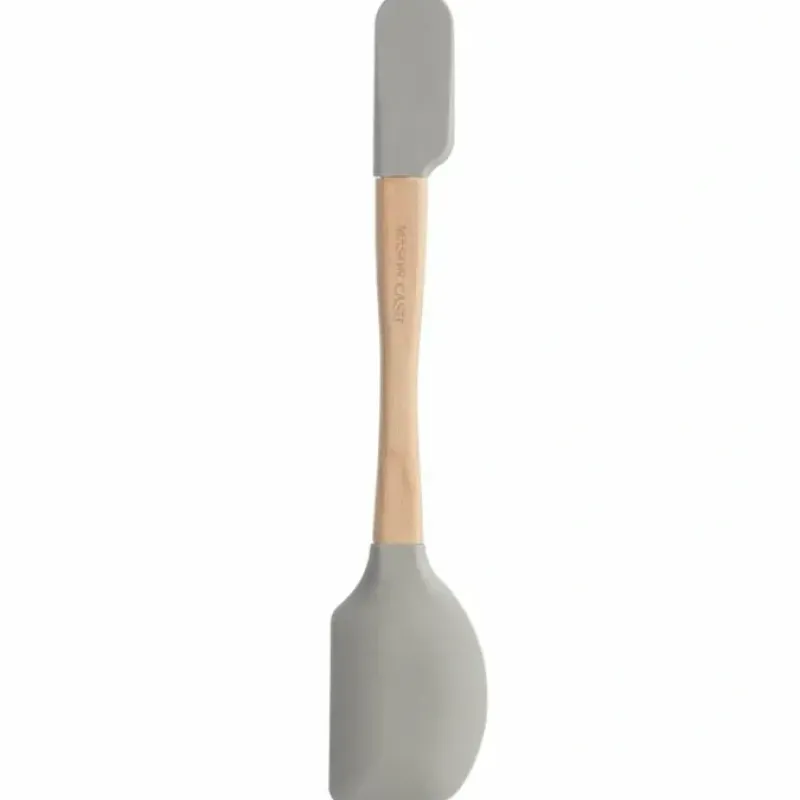 Get the most out of every kitchen utensil with the Mason Cash Innovative Kitchen collection! This Spatula serves triple duty as a spatula. bowl scraper. and spreader in one. The larger silicone spatula head is ideal for mixing ingredients and making batters. Removable. to make scraping bowls and pans effortless. you can easily maneuver it into tight corners and scrape every bit of batter or frosting from the bowl. The smaller spatula is perfect for icing cakes and cookies or scraping every bit of jam from the jar. A good spatula is essential for every kitchen; make yours this double-duty. dual-ended one by Mason Cash!