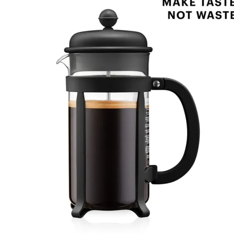 - Stainless steel plunger prevents ground beans escaping when the coffee is poured.