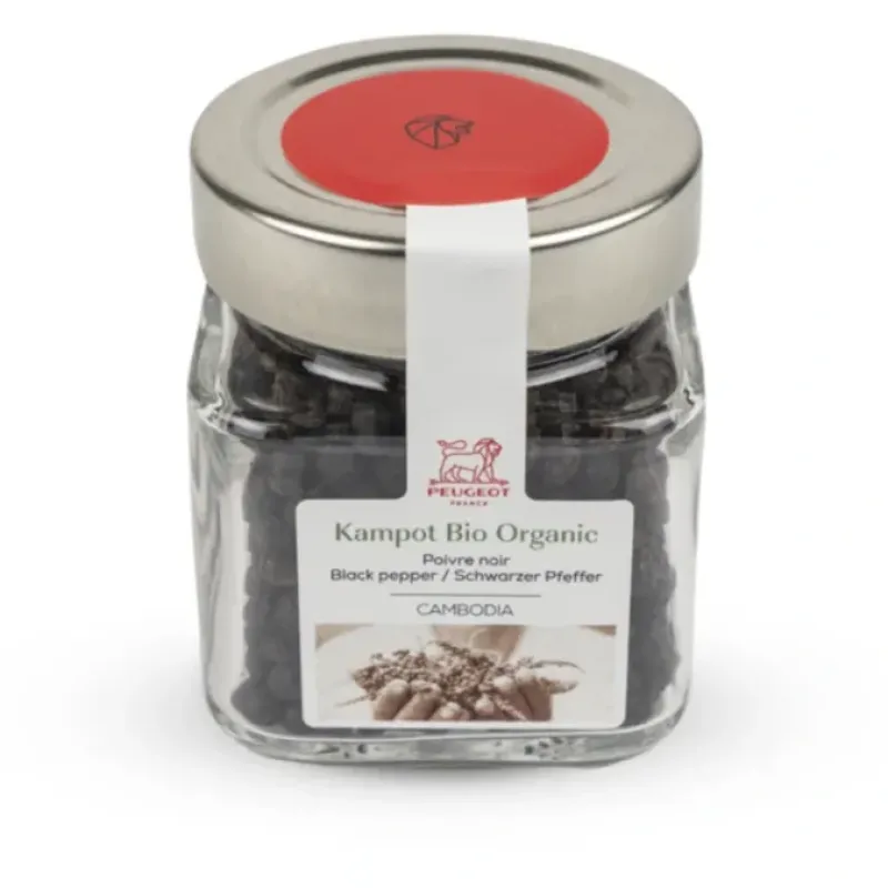 The Kampot organic black pepper is grown on a certified fair-trade farm in Cambodia and delivers an indulgent fruity taste with a surprisingly fresh hint of mint. It is the perfect accompaniment to red meat. oily fish. vegetables (red cabbage. tomatoes). legumes (lentils and chickpeas). certain fruits (strawberries and cherries) and chocolate-based desserts.