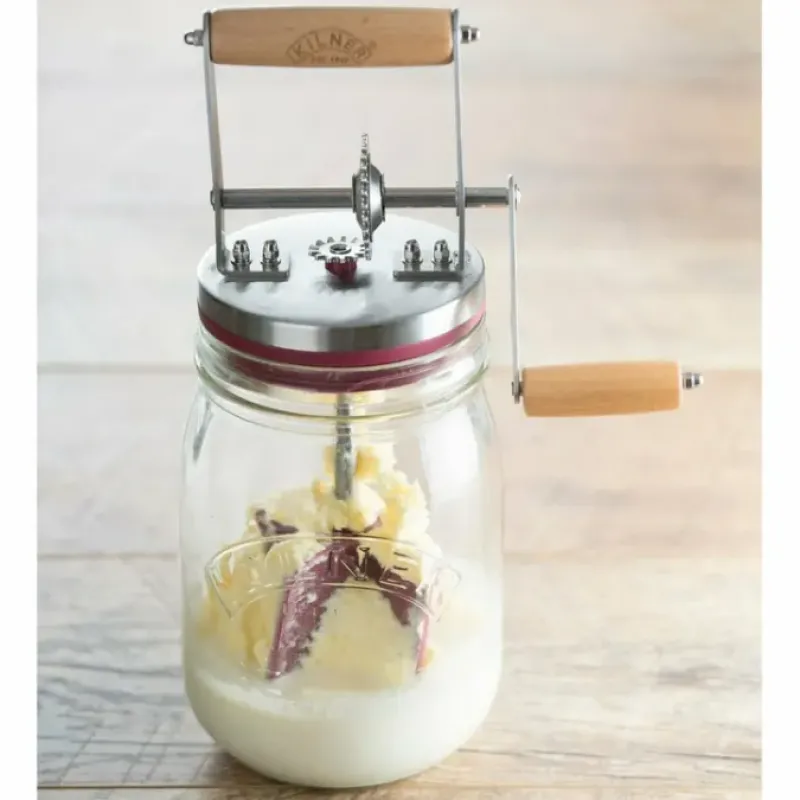 Fresh-made butter in mere minutes? You heard it here first. What you’ll need is heavy whipping cream and your favorite music (OK. that part’s optional). Simply add the cream to the Kilner Butter Churner. then turn the crank vigorously for 10 minutes. The stainless steel lid will keep everything contained while that rubber paddle in tandem with some wrist action will whip the cream into a frenzy of deliciousness until it yields your favorite creamy spread. Once you’ve dished up your butter. the jar will zip through the dishwasher. but we recommend hand washing the mechanism to keep it in tip-top shape for years (and many waffle parties) to come.