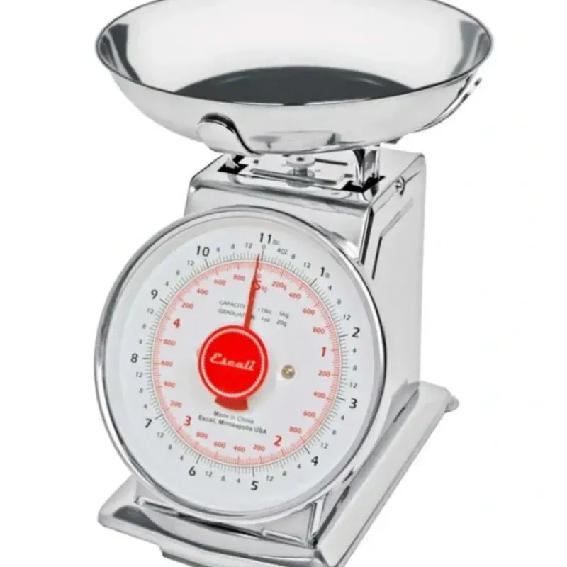 The Mercado Mechanical Dial Scale (11 lb capacity) feature accurate measuring in an environment where a digital scale is not essential. This durable spring scale has a metal frame. easy to read dial display and stainless steel bowl.