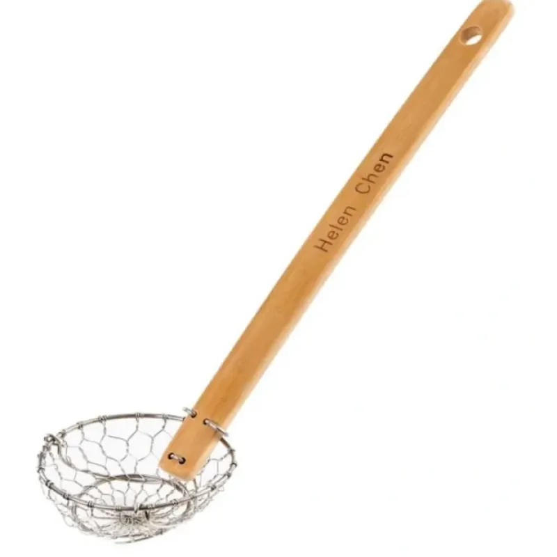 - Helen’s Asian Kitchen Mini Stainless Steel Spider Strainer with Bamboo Handle safely scoops up foods and thoroughly drains hot oil and boiling liquids