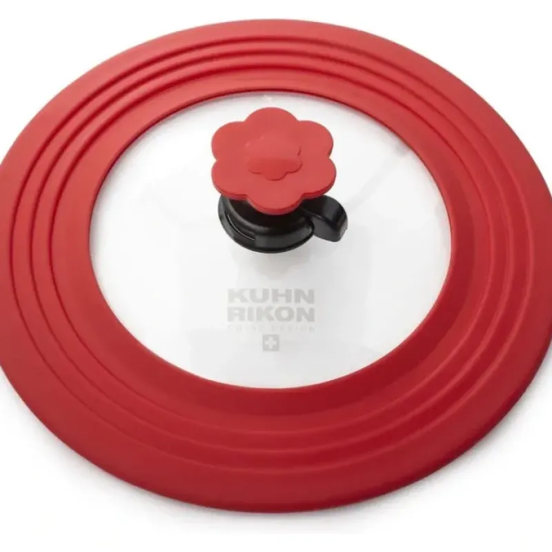 - Flower-shaped knob provides a secure. slip-free grip when placing or removing the lid